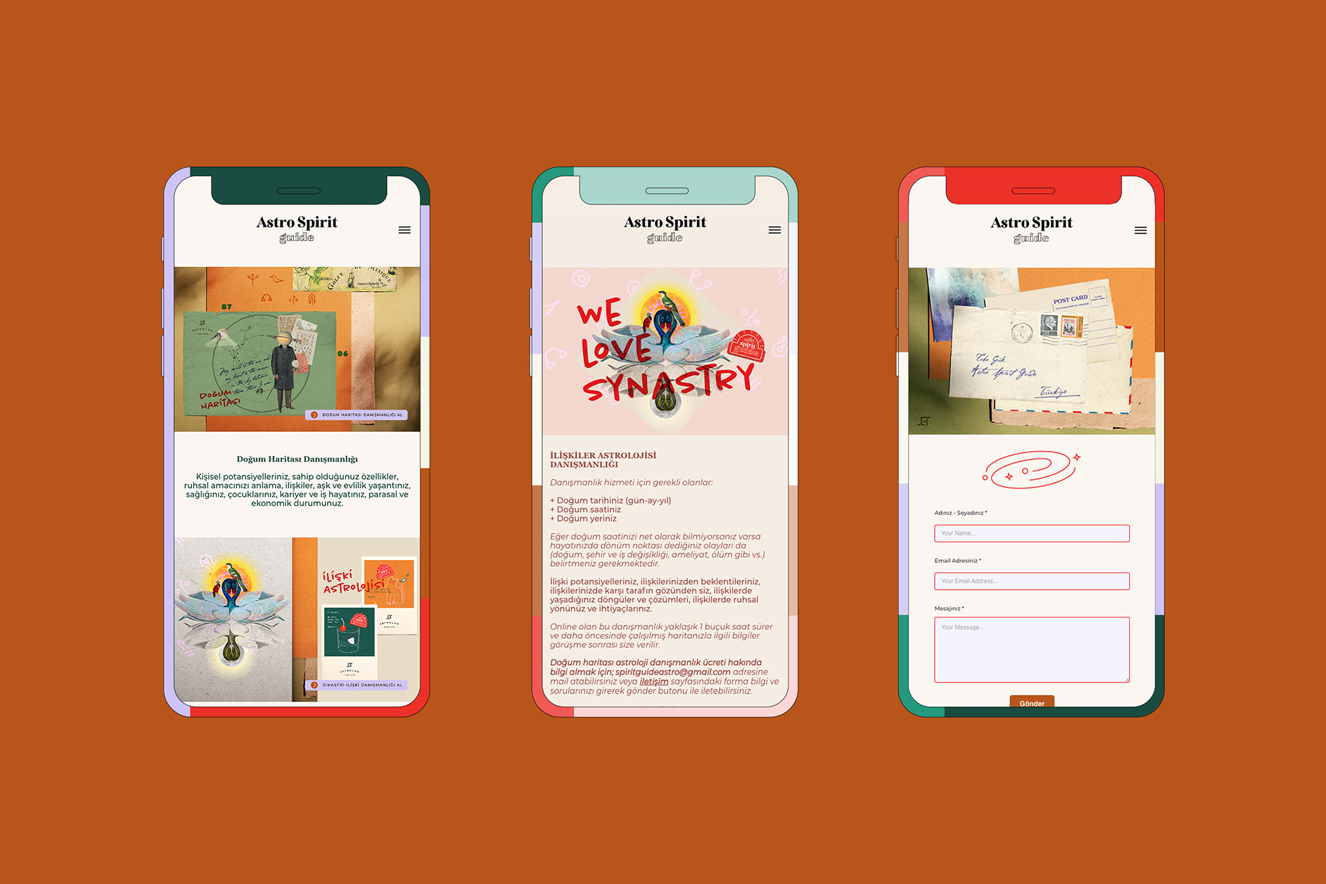 According to astrology, those born in the latter half of the 1980s will meld the ancient and the new cultures. This generation, which acts as a bridge, facilitates contact between the young, tech-savvy individuals and the elderly who are struggling to keep up. Astro Spirit Guide's founder, astrologer Tuba Gök, was born in 1987. The design's fusion of vintage and contemporary lines as well as the change from pastel tones to contemporary digital hues serve to illustrate this viewpoint. There is a search of harmony between these two opposing ends.