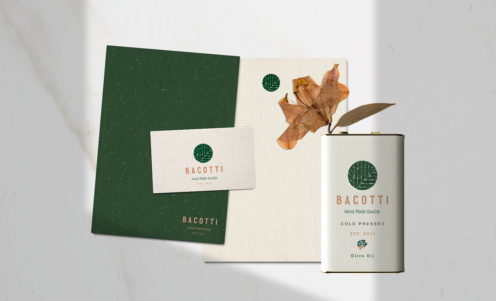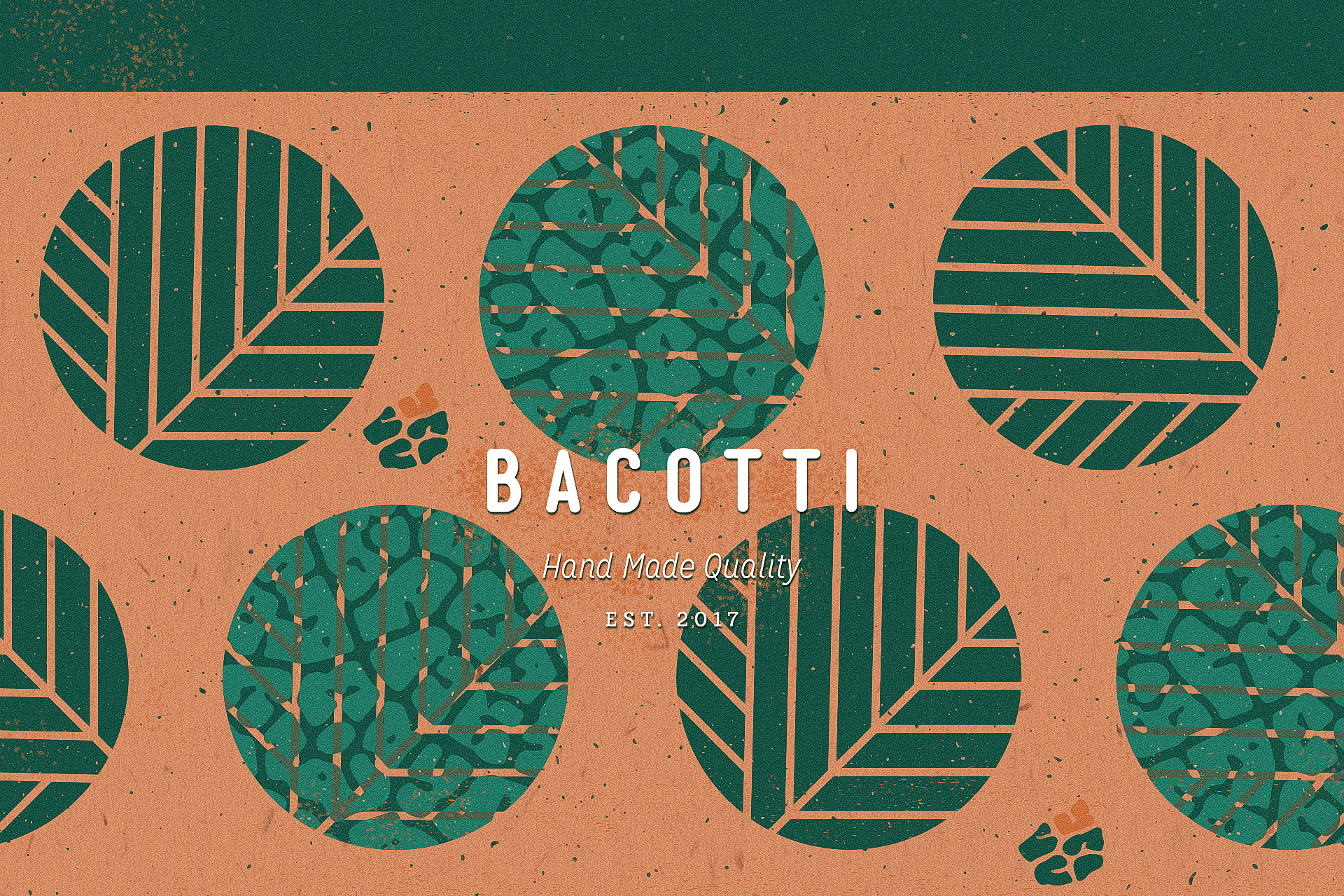 Organic Production Bacotti is a brand consisting of organic products. Drawing inspiration from nature, we captured the textures of leaves. We highlighted different leaf textures in the logo, showcasing both a minimalistic and macro approach during the design process.